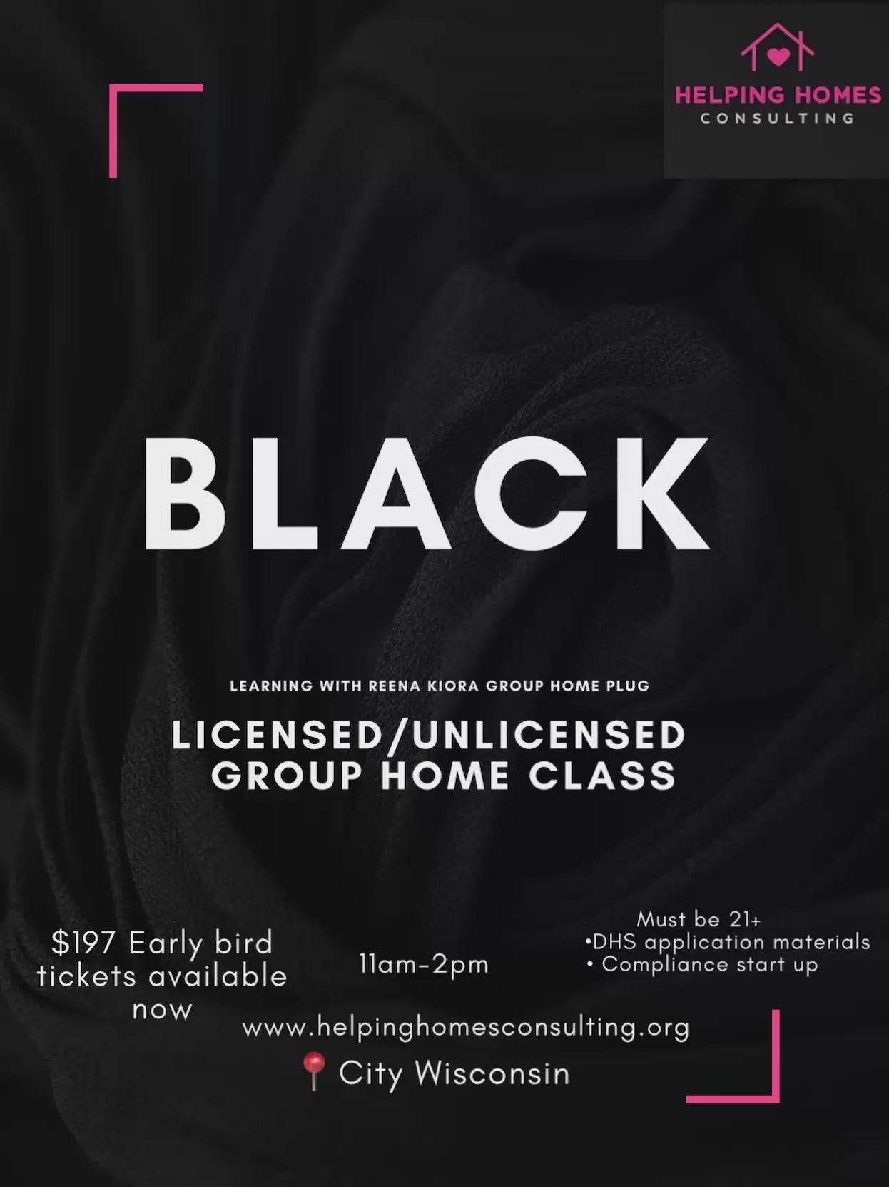 This ticket is provided for admission to the Helping Homes Consulting βLadies Seminar of the Yearβ in Wisconsin. It does not include any guarantee of licensure approval.